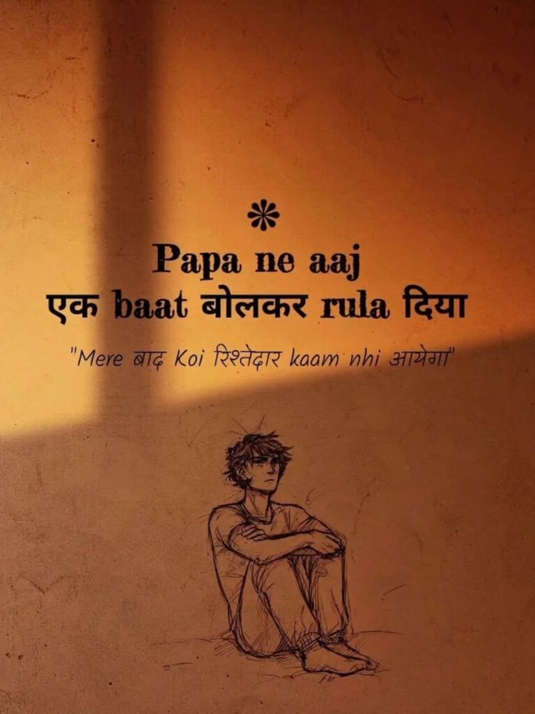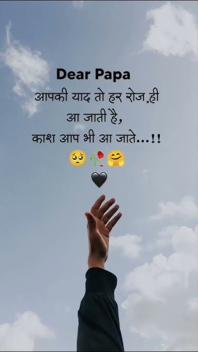 पापा, यह नाम ही अपने आप में पूरी दुनिया है। उनकी कमी हर कदम पर महसूस होती है, एक ऐसा खालीपन जिसे कोई भर नहीं सकता। 😥 उनके बिना हर लम्हा अधूरा सा लगता है, उनकी यादें ही अब हमारा सहारा हैं।